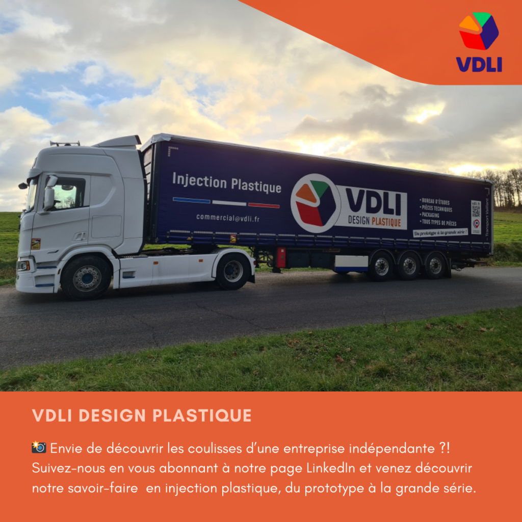 Première OPÉRATION COMMUNICATION 2026 pour VDLI DESIGN PLASTIQUE !Merci au transporteur VAILLANT pour la confiance qu’il nous accorde en véhiculant l’image VDLI DESIGN PLASTIQUE sur son camion semi-remorque.
